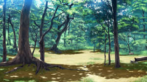 Get Lost In The Lush Beauty Of The Anime Forest. Wallpaper -