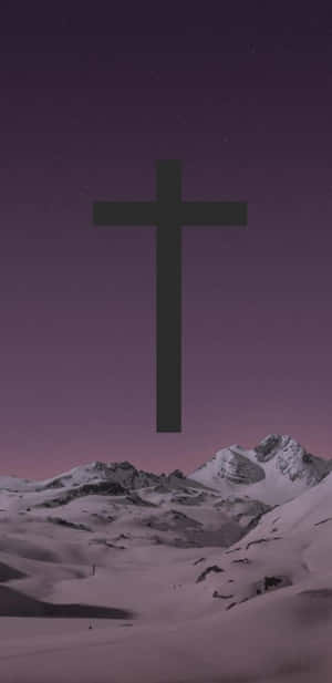 Beautiful Cross Near Snowcapped Mountain Wallpaper -