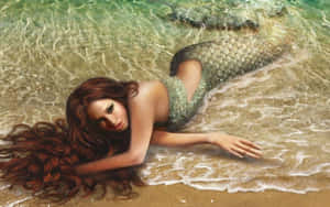 Enjoy The Beauty Of The Ocean With This Captivating Portrait Of A Beautiful Mermaid Wallpaper -