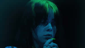 Billie Eilish's Signature Look With A Laptop Wallpaper -