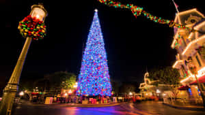 A Christmas Village With A Christmas Tree And Lights Wallpaper -