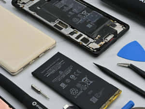 An Iphone With Its Battery And Other Components Wallpaper -