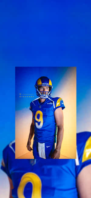 A Blue And Yellow Background With A Rams Player Wallpaper