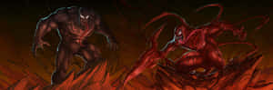 Witness The Epic Battle Between Venom And Carnage Wallpaper -