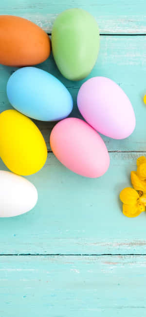 Cute Easter Iphone With Rainbow Colored Eggs Wallpaper -