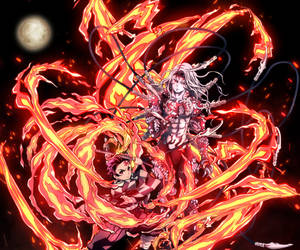 Fire And Ice Clash As Demon Slayer Kokushibo Unleashes His Two Swords Wallpaper -