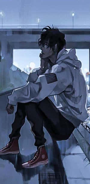 Sad Anime Boy Sitting In Despair Wallpaper -