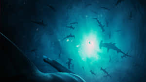 A Large Group Of Sharks Swimming In The Ocean Wallpaper -