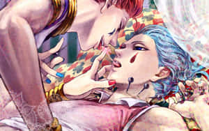 A Couple Of Anime Characters Are Holding Cards Wallpaper -