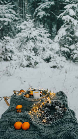 Enjoying The Holidays With An Iphone In The Snow Wallpaper -