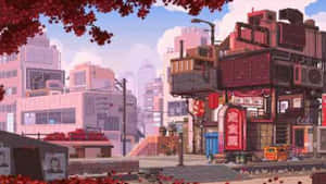 A Vintage, Yet Modern View Of The Streets Of Tokyo During Cherry Blossom Season Wallpaper -