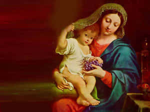 Mother Mary Holding The Holy Child Jesus In Her Loving Embrace Wallpaper -