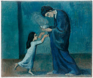 "touching Motherhood Moment In Blue Hues" Wallpaper -