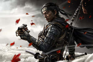 "a Ninja In A Stormy Landscape - An Image Taking After The Journey Of Ghost Of Tsushima" Wallpaper -