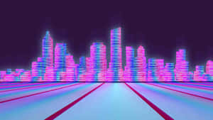 A Synthwave Skyline Lights Up The Night Sky. Wallpaper -