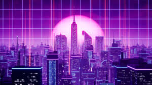 Synthwave City With Purple Sky Wallpaper -