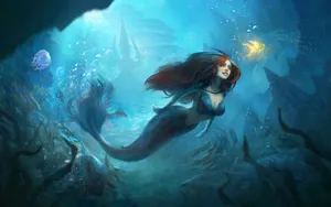 A Magnificent Mermaid Swimming Gracefully Through A Pool Of Shimmering Water. Wallpaper -