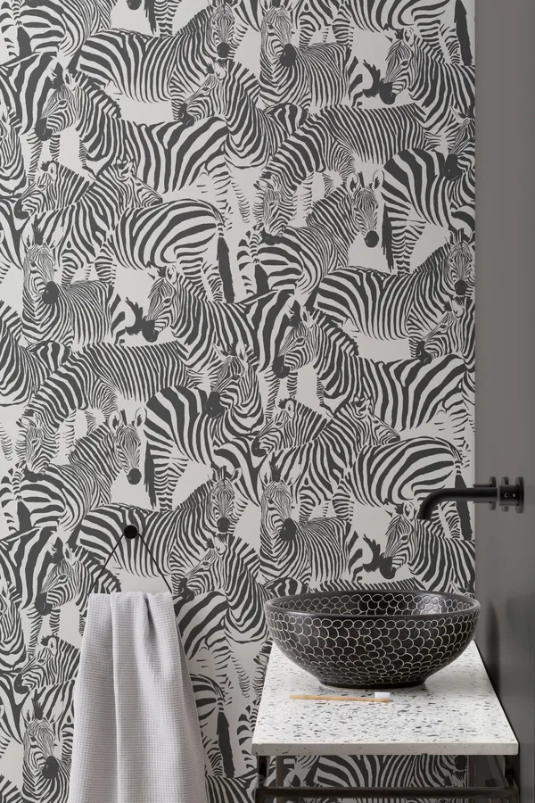 Related A Bathroom With Zebra Wallpaper And A Sink Wallpapers