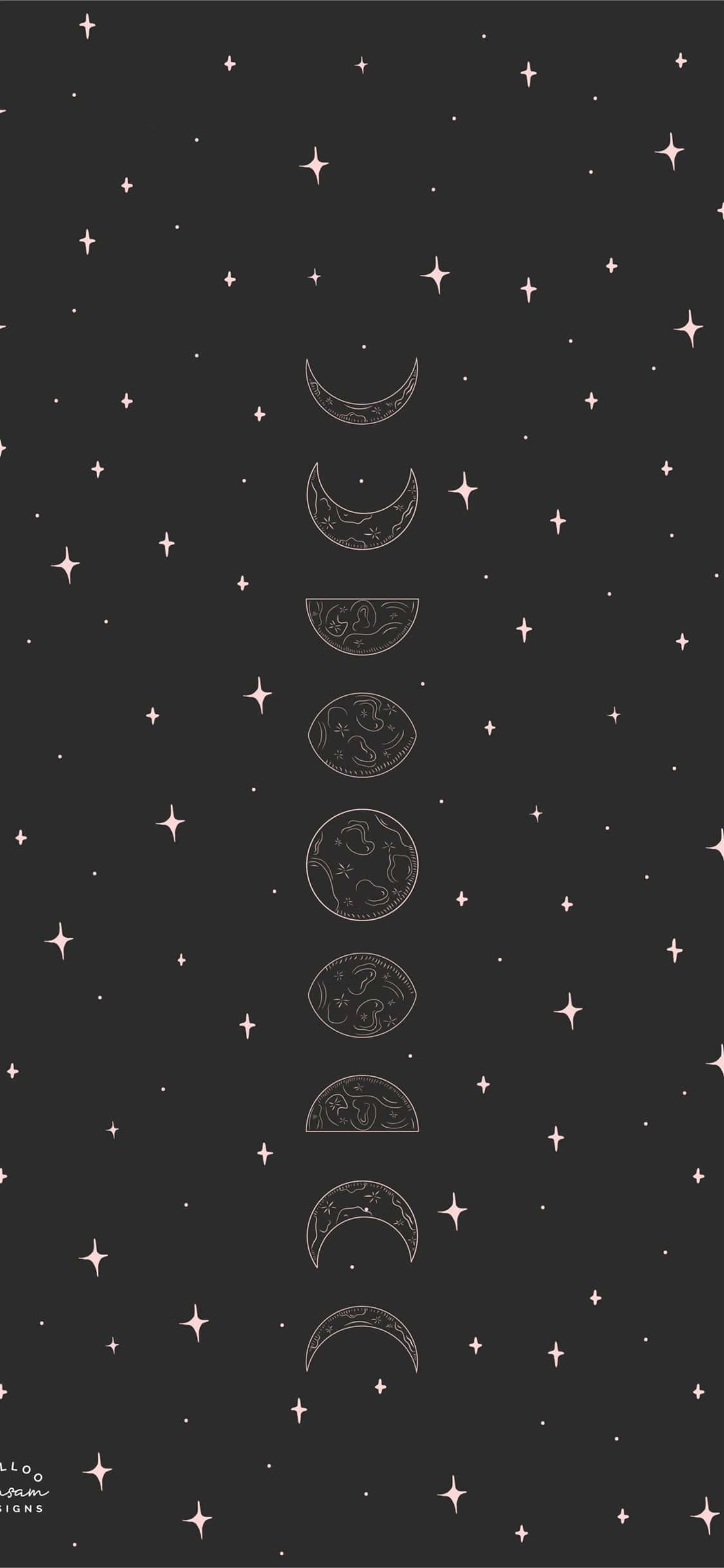 A Black Background With Stars And Moon Phases Wallpaper -