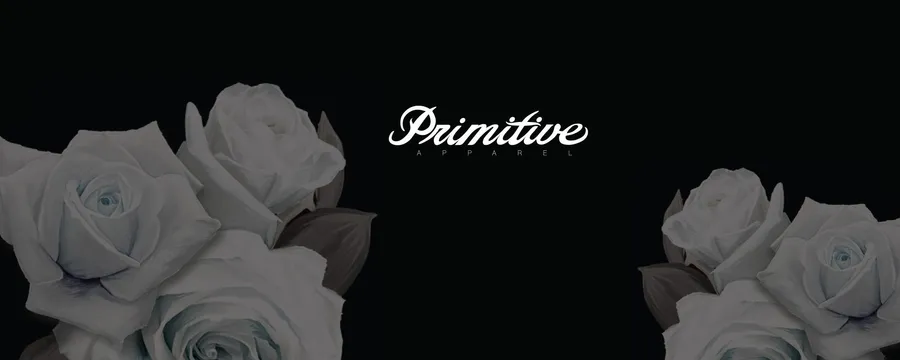 A Black Background With White Roses And The Word Primative -