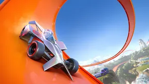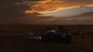 A Car Driving Down A Track In A Video Game Wallpaper -