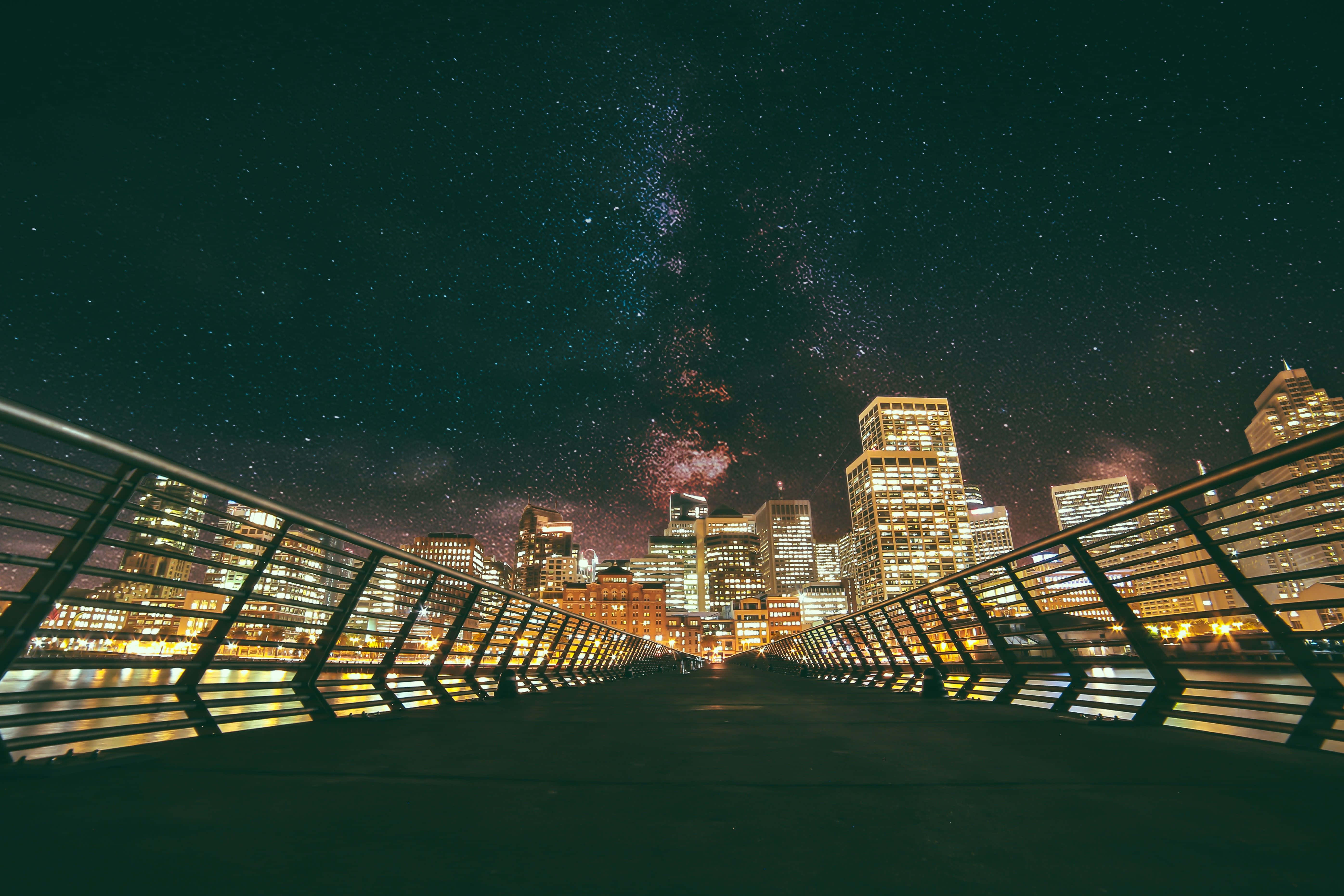 A City With A Blue Sky And A Blue Light Wallpaper -