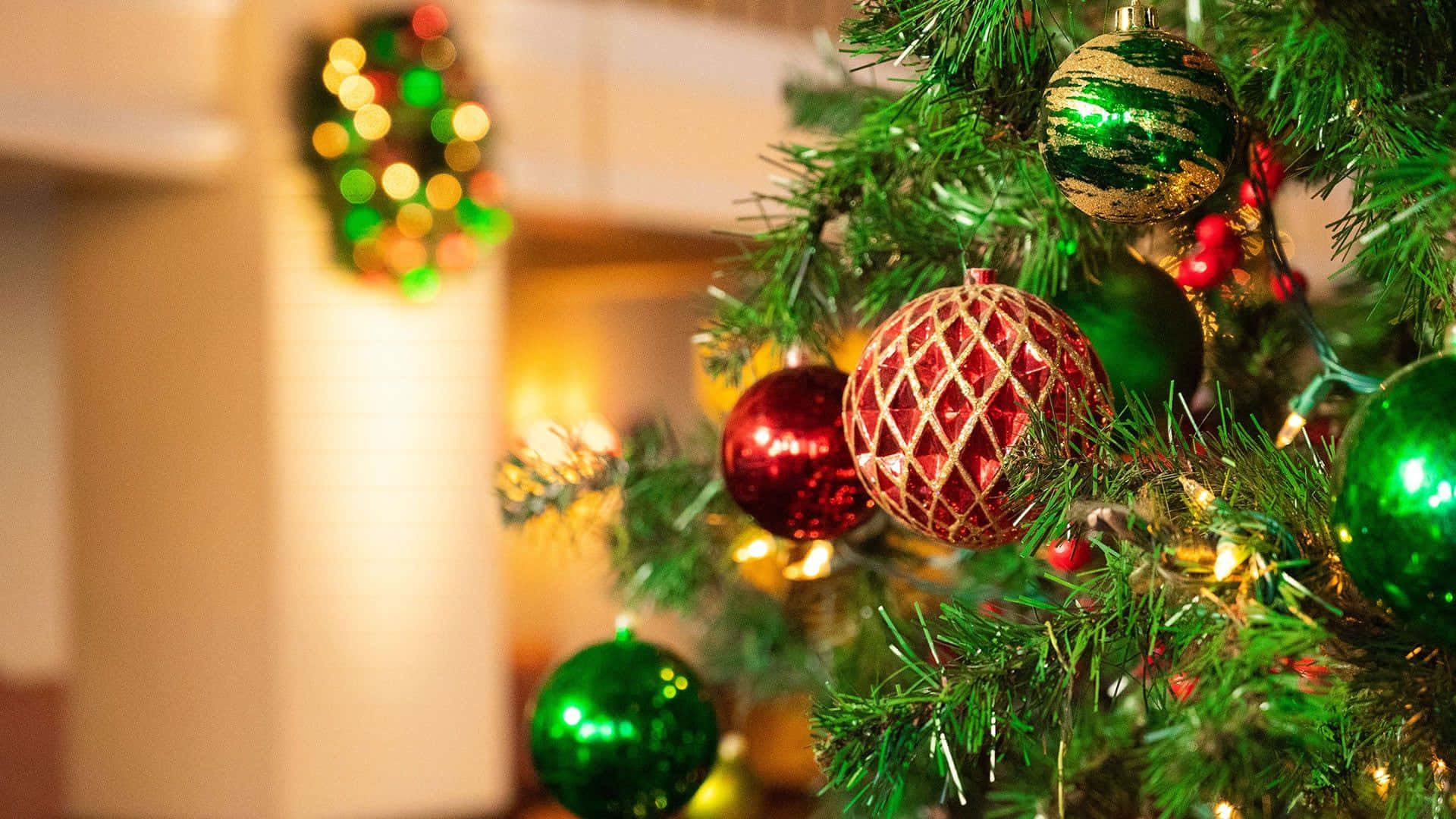 "festive Moments With Red And Green Christmas Decorations" Wallpaper -