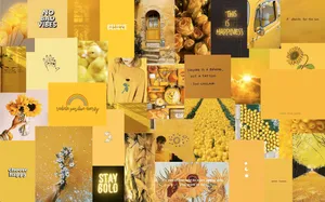 A Collage Of Yellow Pictures With The Words Great Times Are Coming Wallpaper