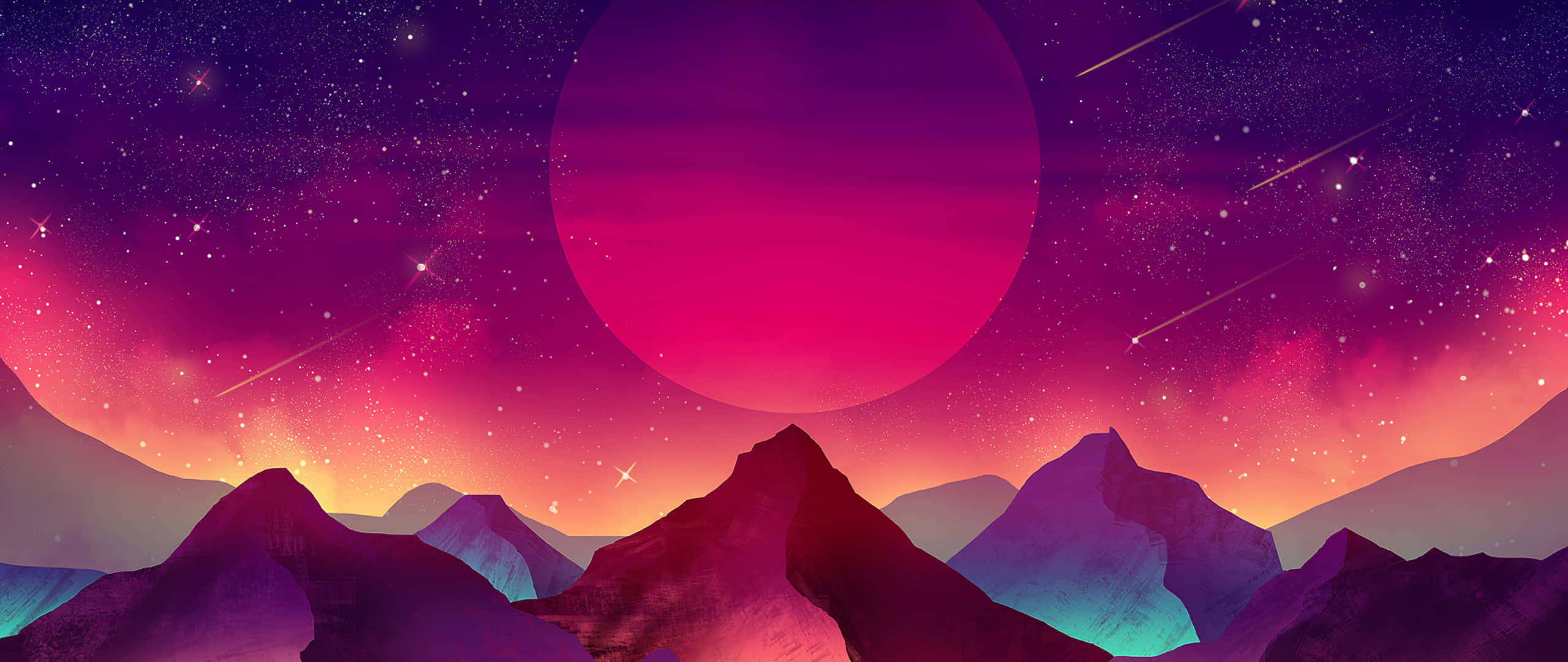 Pink Sun Through A Valley Art 2560x1080 Wallpaper -