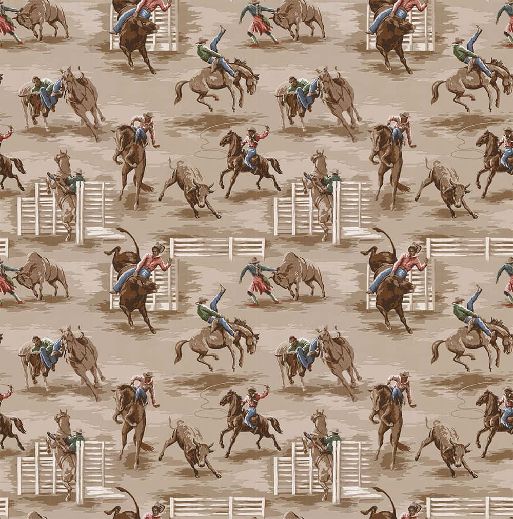 A Cowboy And Cowgirl Pattern With Horses And Cowboys Wallpaper