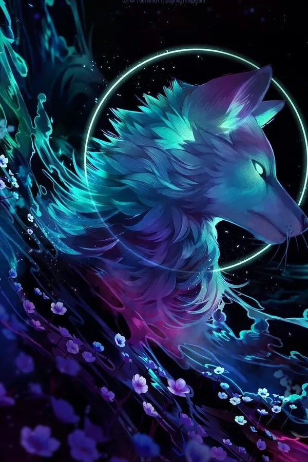 A Mystical Wolf Of Water And Fire Wallpaper -