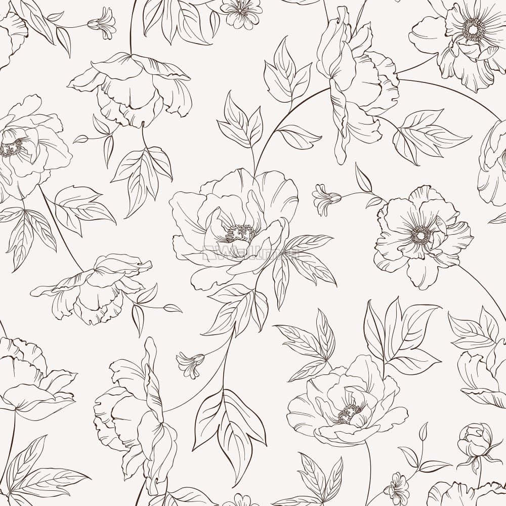 A Black And White Floral Pattern On A White Background Wallpaper -