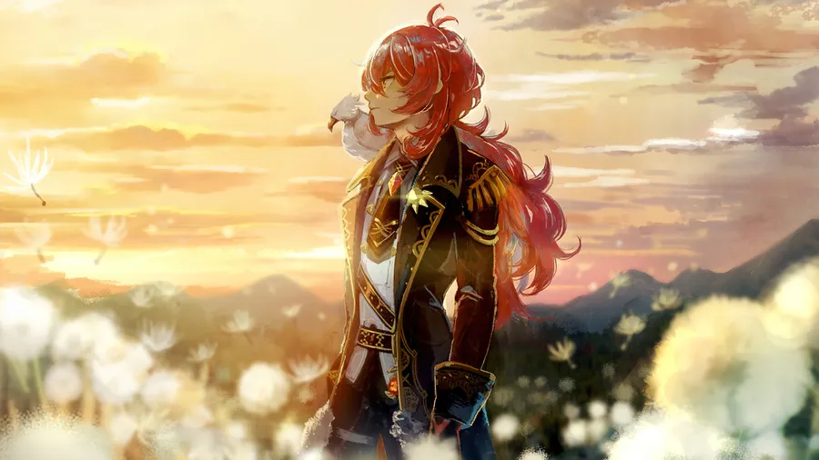 A Girl In A Dress Standing In A Field Of Dandelions Wallpaper