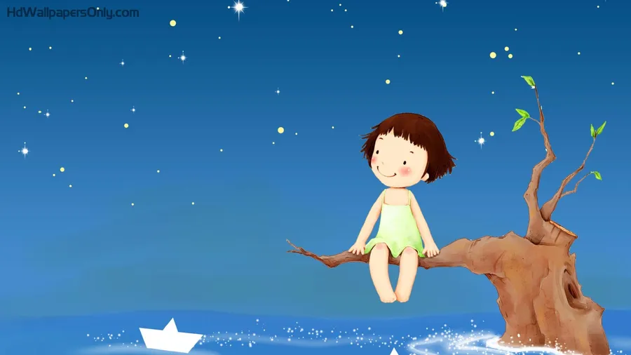 Related A Girl Sitting On A Tree Branch With A Paper Boat Wallpapers