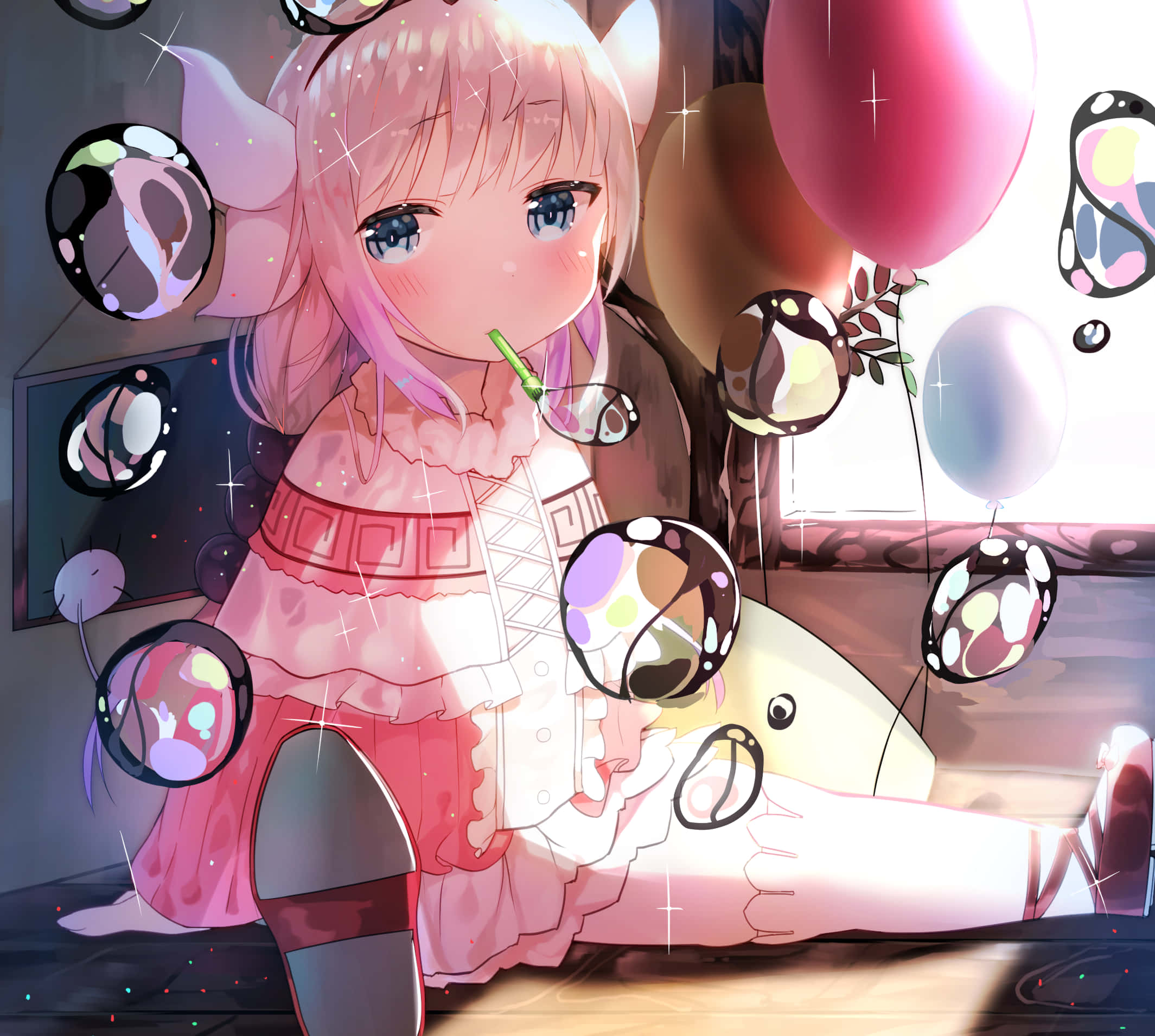 Related A Girl Sitting On The Floor With Balloons Wallpapers