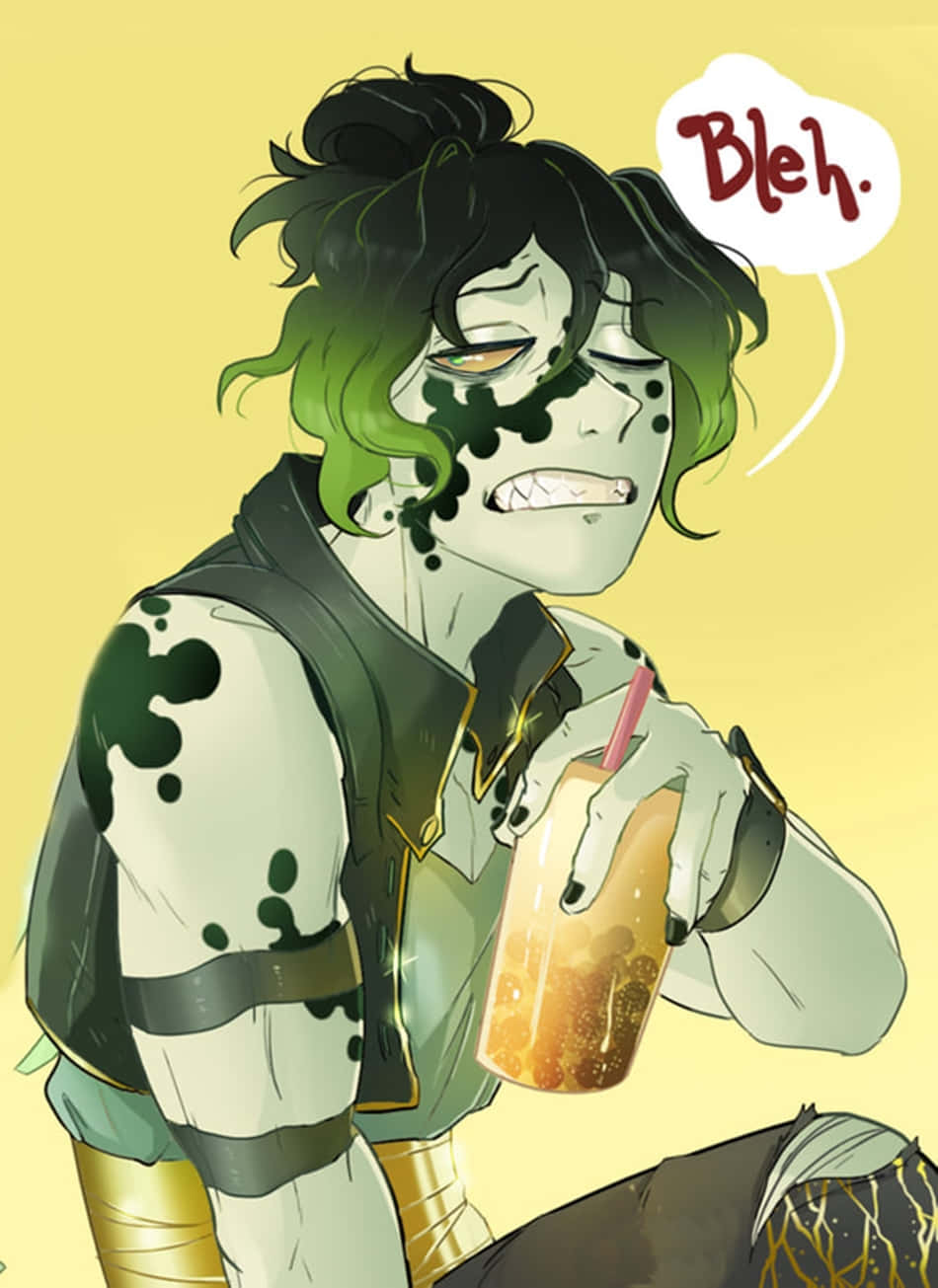 A Girl With Green Hair And A Drink Wallpaper
