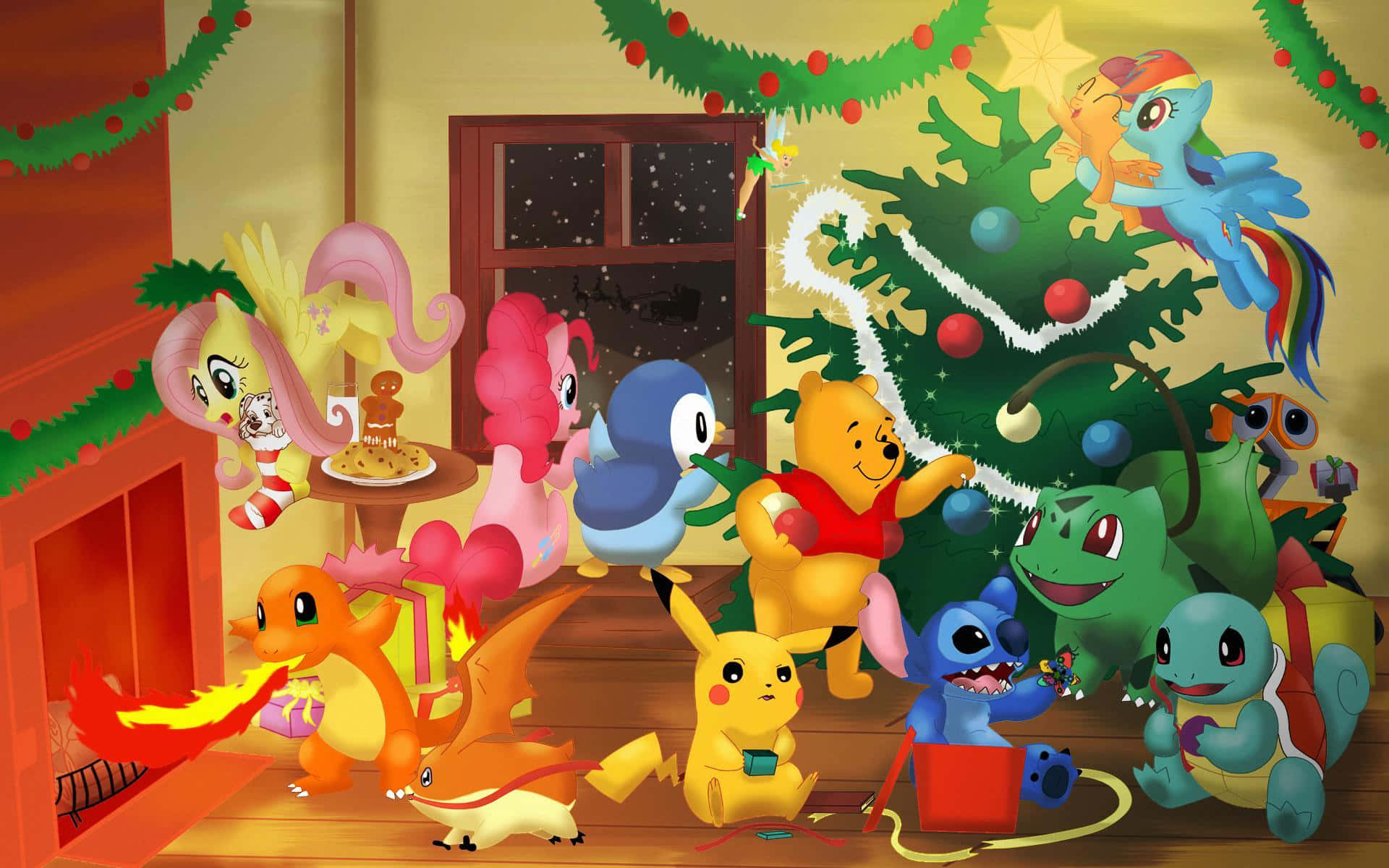 Celebrating Christmas With Pokemon Wallpaper -