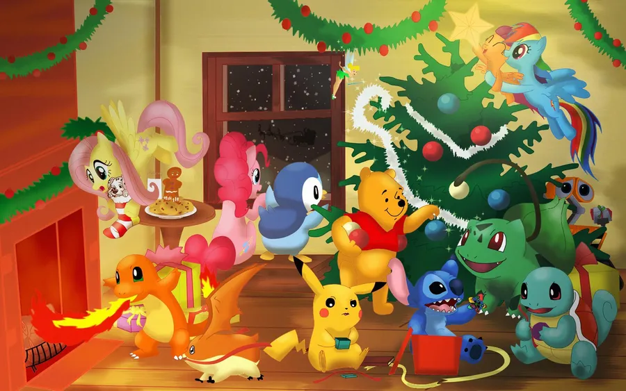 Enjoying A Delightful Pokemon Christmas! Wallpaper -