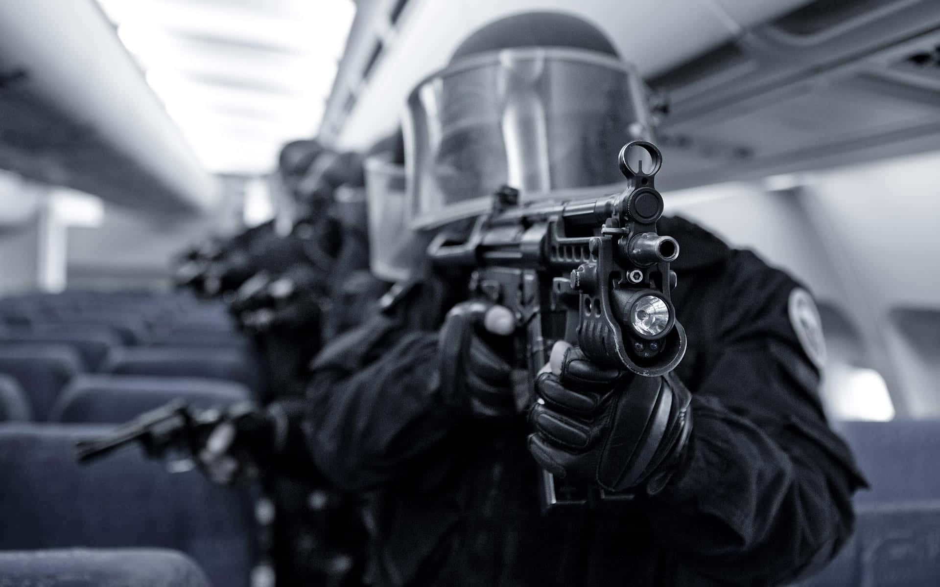 A Group Of Police Officers On An Airplane Wallpaper