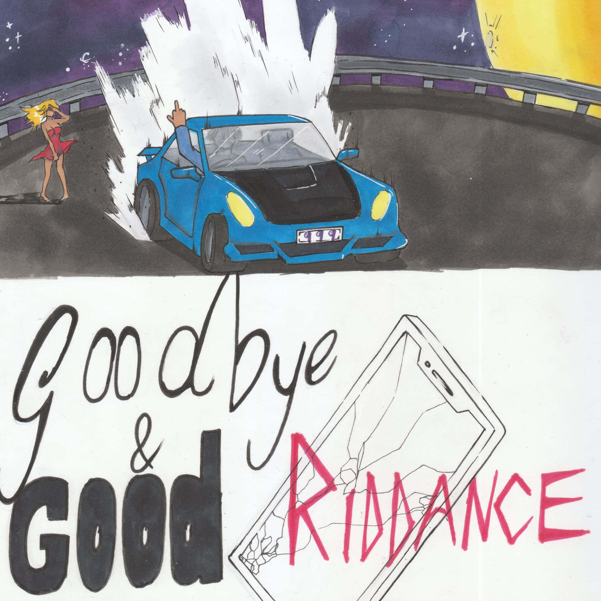 A Drawing Of A Car With The Words Good Bye And Good Ridance Wallpaper -