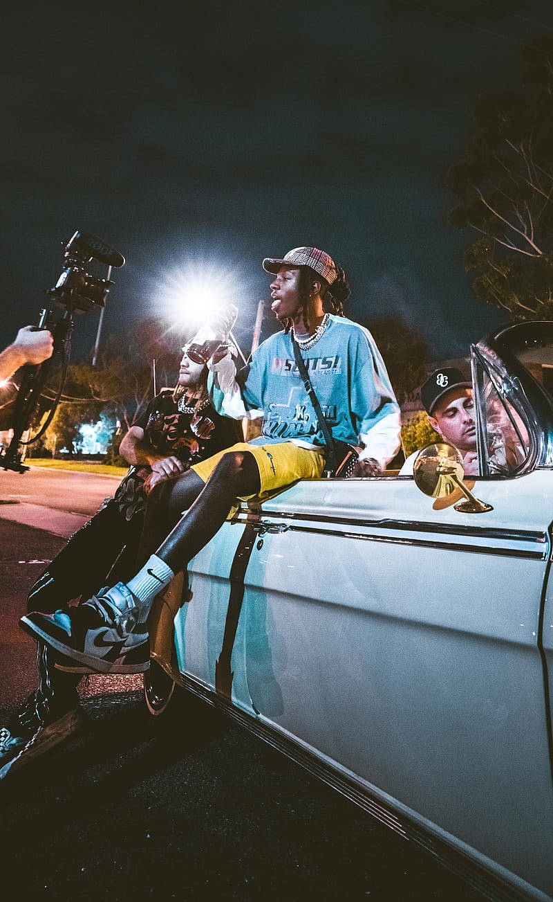 A Man And A Woman Sitting In A Car At Night Wallpaper