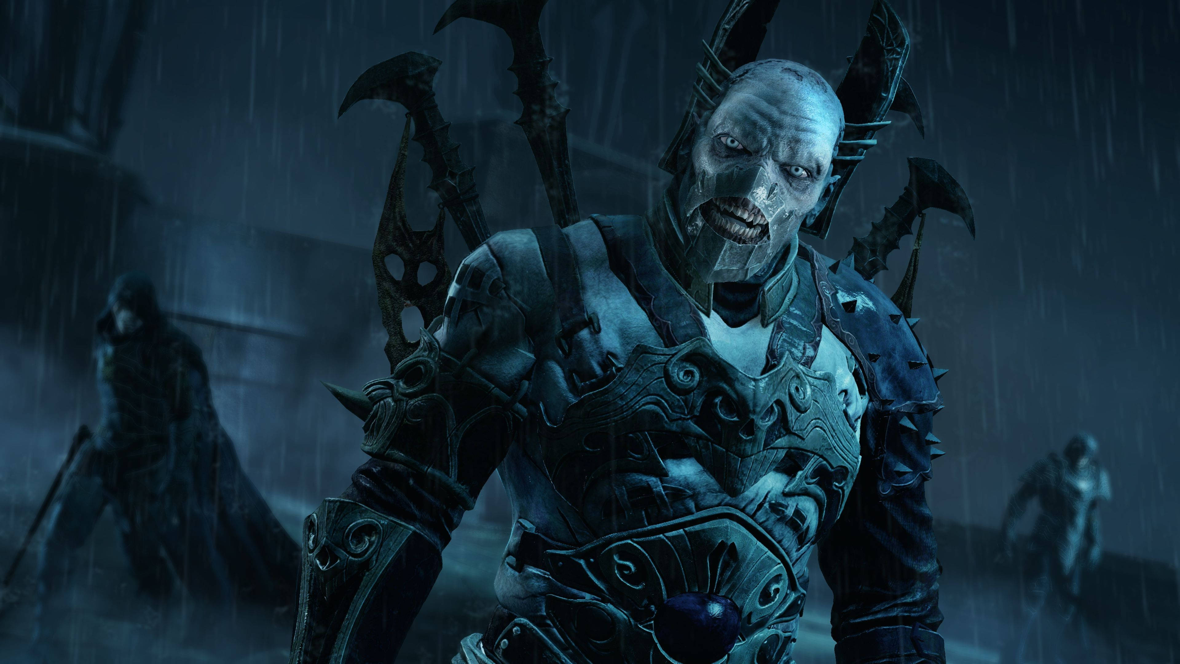 A Man In Armor Is Standing In The Rain Wallpaper