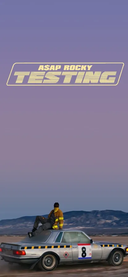 A Man Is Sitting On Top Of A Car With The Words Testing Wallpaper