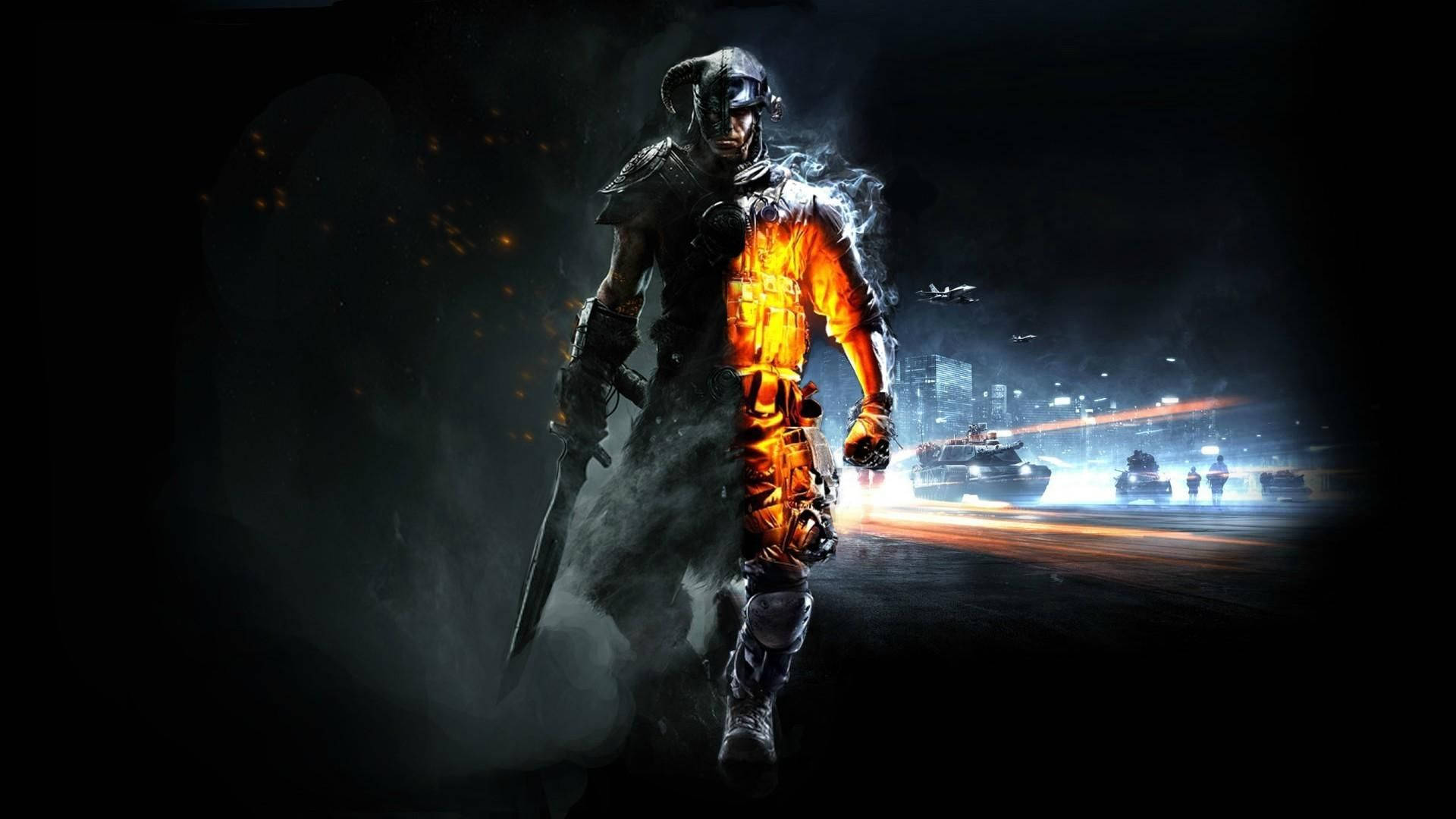 A Man With A Sword In The Dark Wallpaper