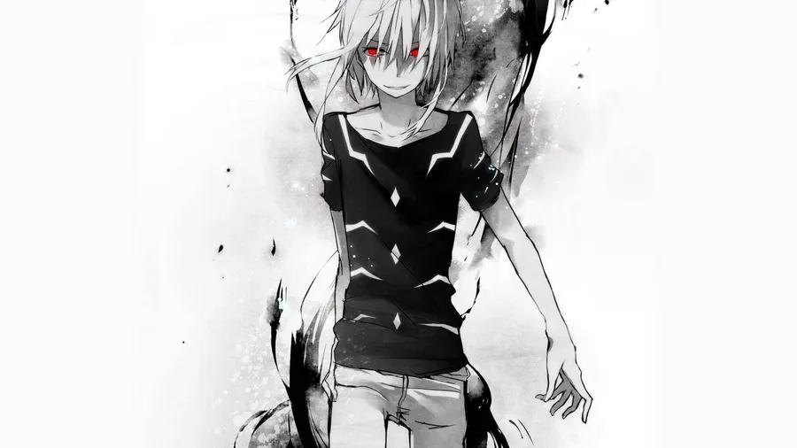Black And White Anime Boy Red Eyes Wallpaper -
