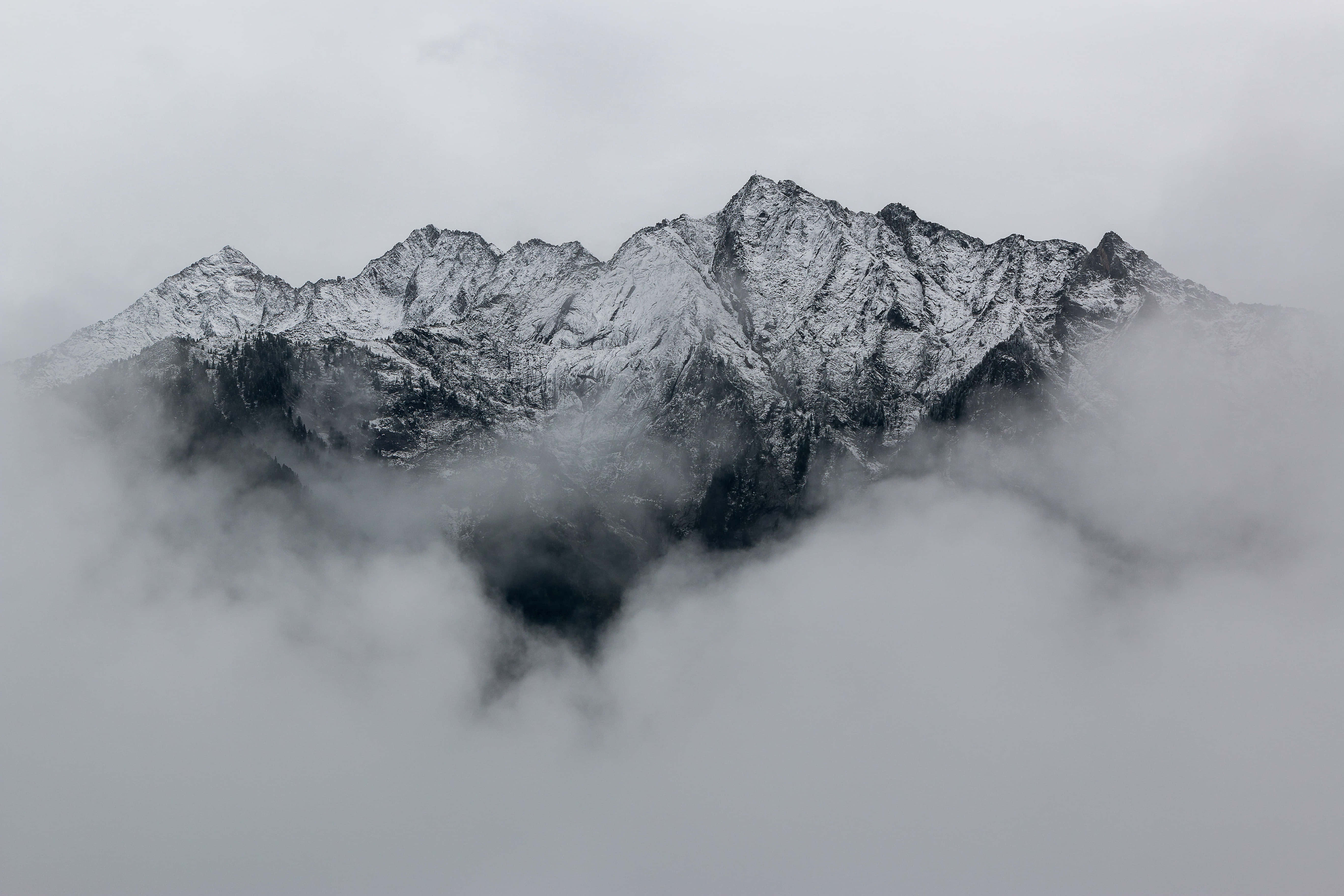 A Mountain Range Covered In Clouds Wallpaper -