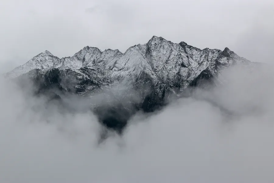 A Mountain Range Covered In Clouds -