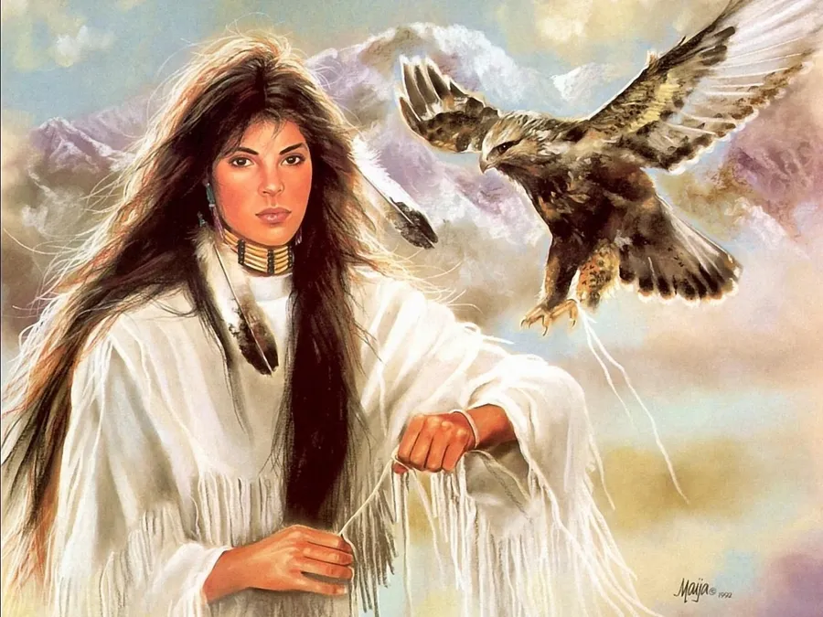 Related A Painting Of A Native American Woman With An Eagle Wallpapers