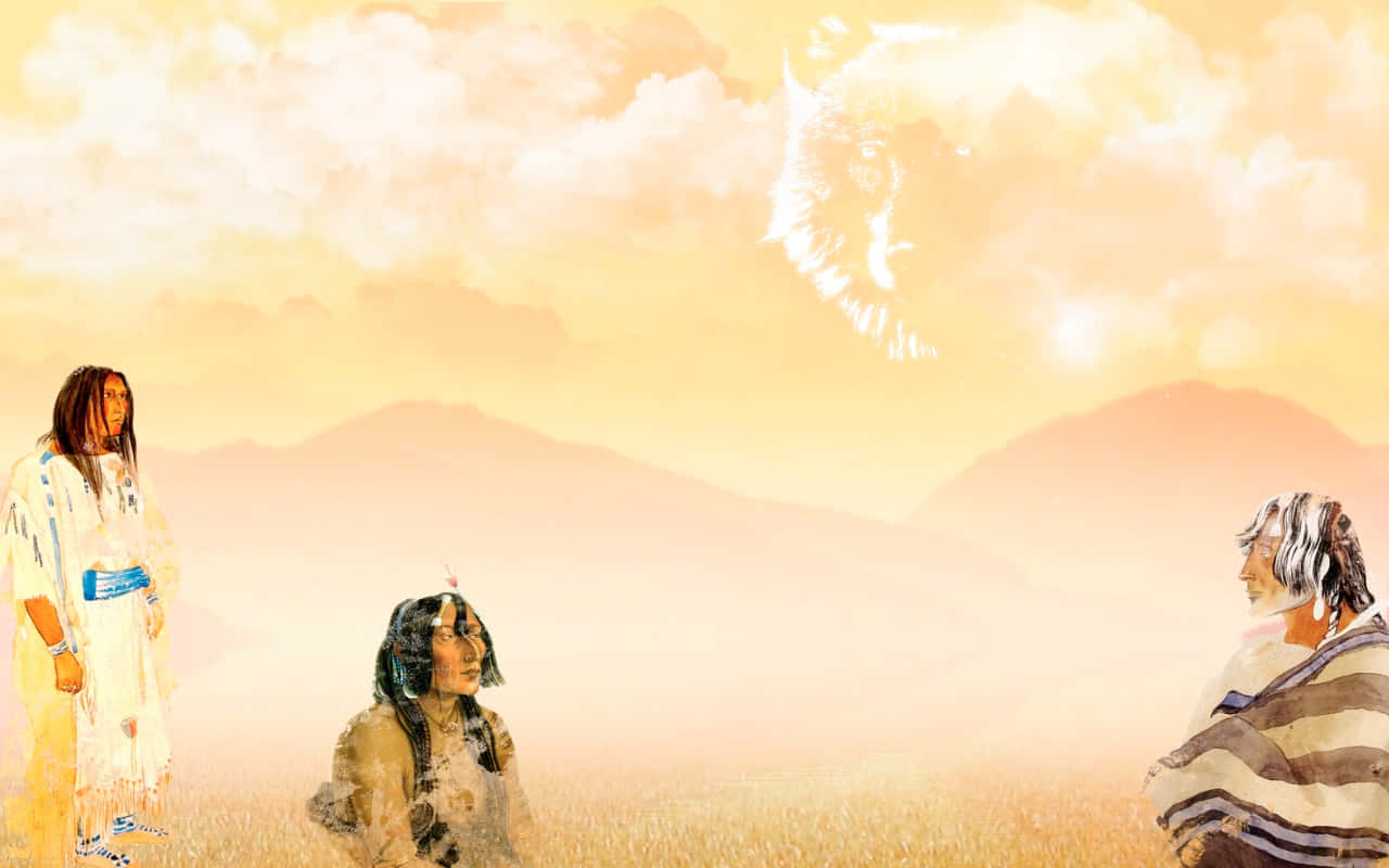 A Painting Of A Group Of Native Americans Wallpaper -