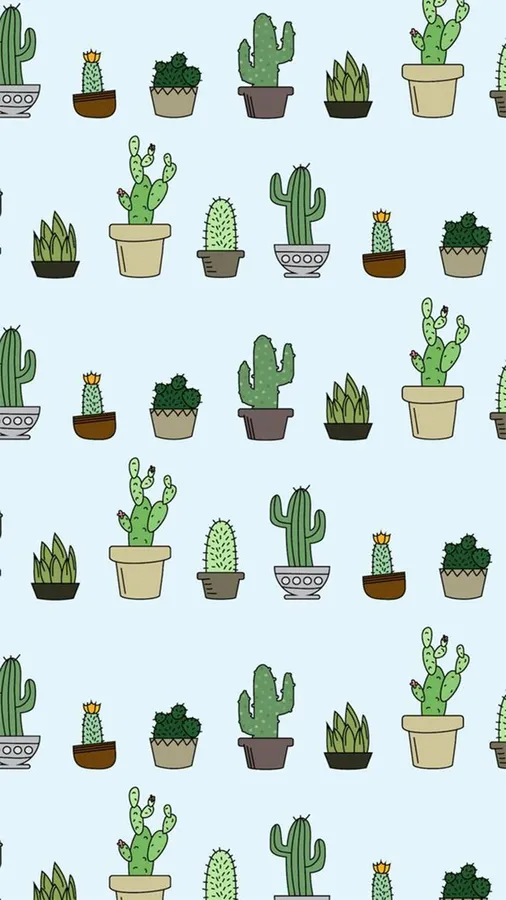 A Pattern Of Cactus Plants In Pots Wallpaper -